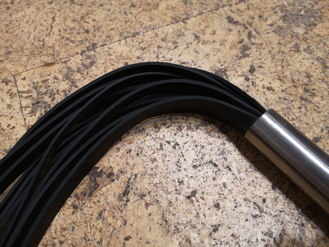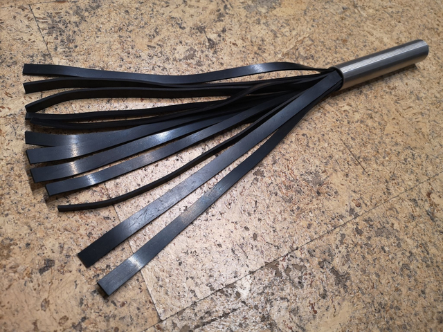 Flogger Edelstahlgriff ( Durchmesser 25mm und 135mm lang ) mit 8-10mm x 2mm Gummi Riemen.